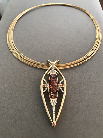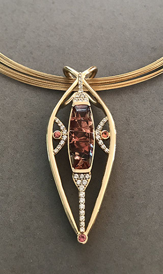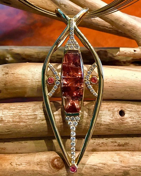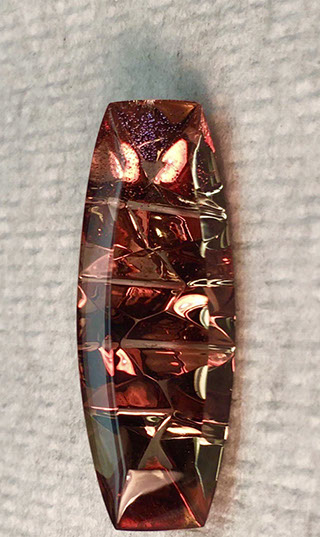I sent the 62.6 ct piece of rough to one of my favorite Lapidary Artists and he recommended I send it to Aaron Sangenitto for carving.We spoke I sent him my pendant design and we plotted it shape and design. I loved his suggested carving concept and I asked if he could facet it as well. The outcome exceeded my expectations.
