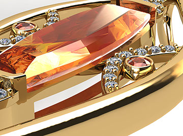 The pendant is 14k Yellow Gold, that incredible 13.13 ct 27.56 x 10.40 mm Orange Schiller Oregon Sunstone, 39 White and 3 Orange Sapphires.