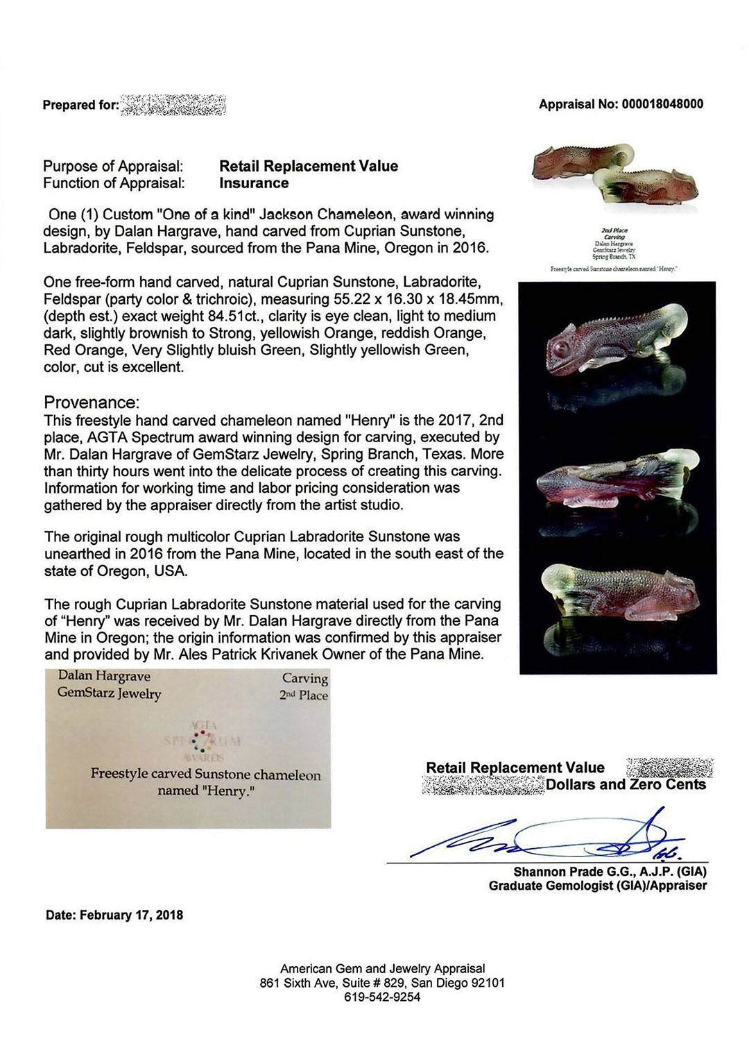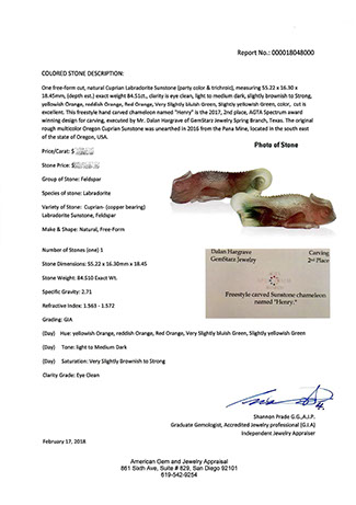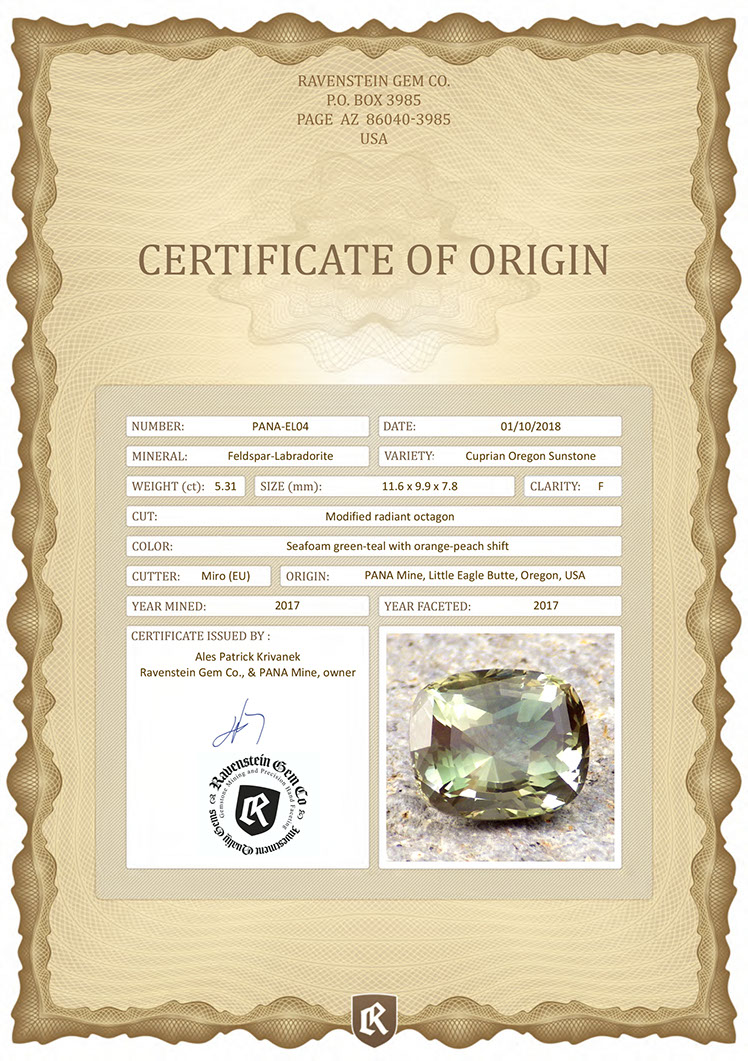 Please email us copy of your Oregon Sunstone gem certificates so we can share with others. If you are a professional appraiser please send us your business information and photos to: info@oregonsunstoneguide.com