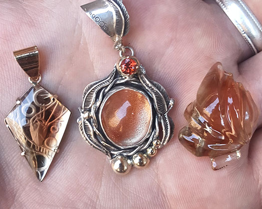 Oregon Sunstone pendants by Jack Hoque.