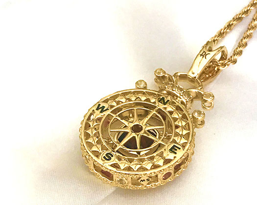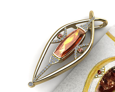 PANA Mine Oregon Sunstone pendant in 14K gold and natural diamond accent (detail)