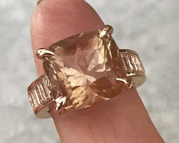 12.00 ct schiller Oregon Sunstone in 14k Rose Gold with white sapphire, rough from Sunstone Butte mine, faceted by Herb Mair (3)