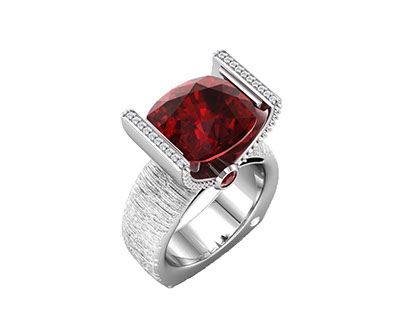 4.44 ct Marquise Mahogany-Red Schiller set in 14 kt Rose Gold accented by Sapphires (2)