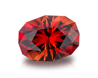 6.81ct fire red cuprian Oregon Sunstone, rough from PANA Mine, faceted by Ravenstein Gem Co, European Union