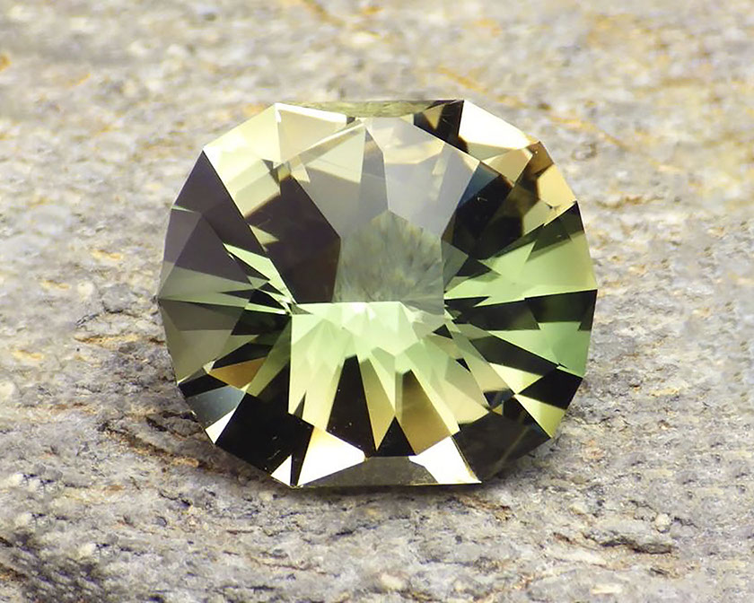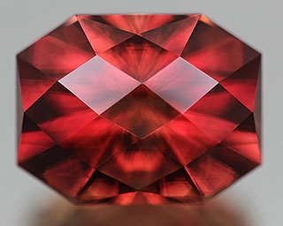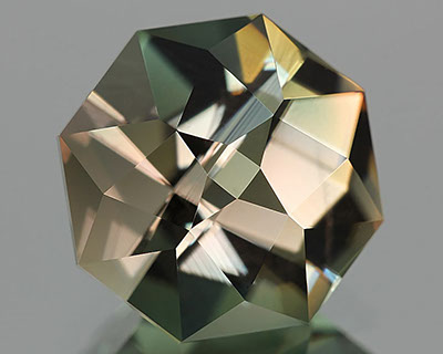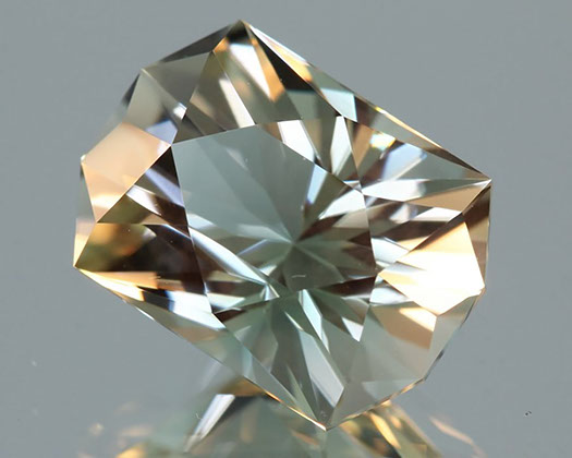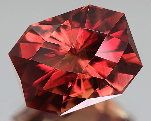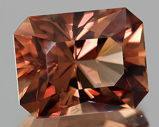 5.25 ct Deep Peach/Pink Oregon Sunstone with a Small Ribbon of Schiller, Pseudo-Radiant Cut by Arya Akhavan, 11.8 x 9.2 x 7.4 mm, eye clean with the exception of the Schiller, rough from PANA Mine. (2/2)