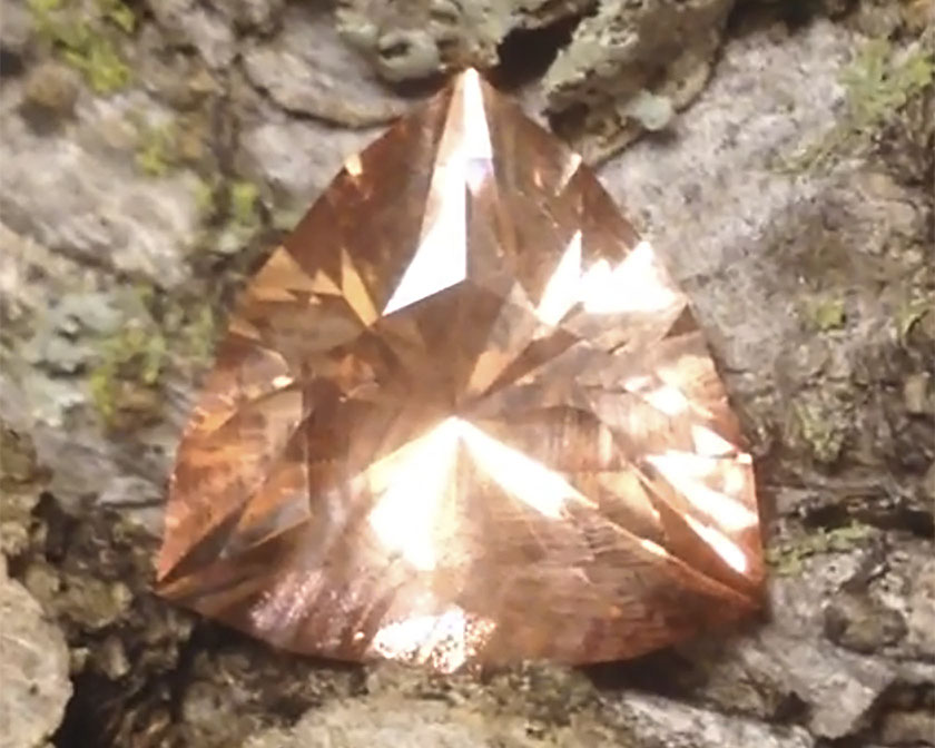 4.34 ct Dichroic Oregon Sunstone in Arya Akhavan PANA MINE-SUNSET BELL design. Rough from PANA Mine, 2018 (1)