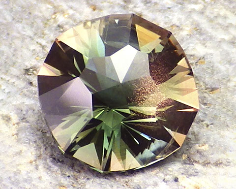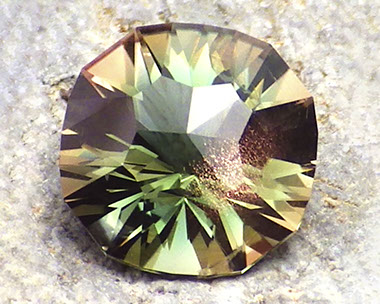 2.48 ct Peacock Green Schiller Oregon Sunstone in Arya Akhavan PANA MINE-SPARKLING WELL design. Rough from PANA Mine, 2018 (1)
