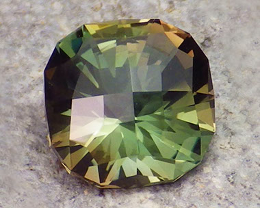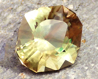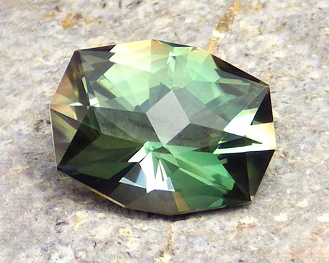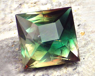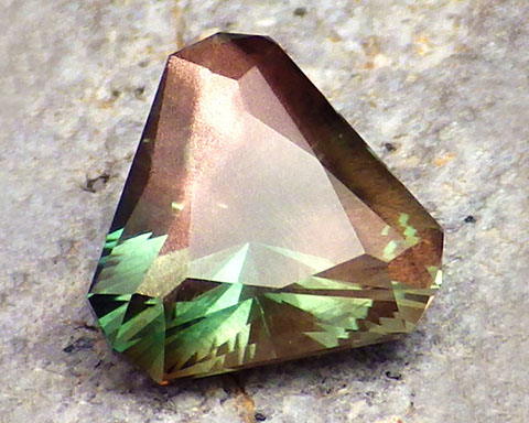 2.94 ct Green Red Dichroic Oregon Sunstone in Arya Akhavan PANA MINE-GEOMETRIC EXPLETIVE cut, rough from PANA Mine, 2018 (1)