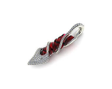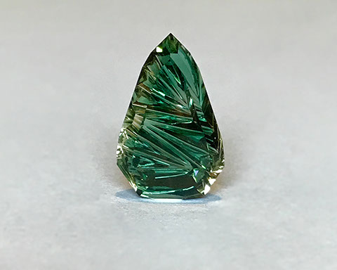 PANA Mineから採掘されたオレゴンサンストーンを使った新作を身につけているRobin Callahan職人