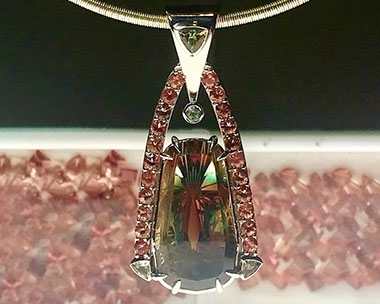 オレゴンサンストーン(産地:PANA Mine)と天然ダイヤモンドの14kゴールドペンダント (4)