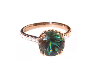 14 Kt rose gold luxury ring with 3.28 ct green dichroic Oregon Sunstone and 0.50 ct accent diamonds. Rough from Spectrum mine (3)