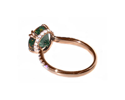 14 Kt rose gold luxury ring with 3.28 ct green dichroic Oregon Sunstone and 0.50 ct accent diamonds. Rough from Spectrum mine (2)