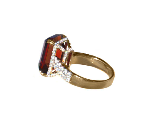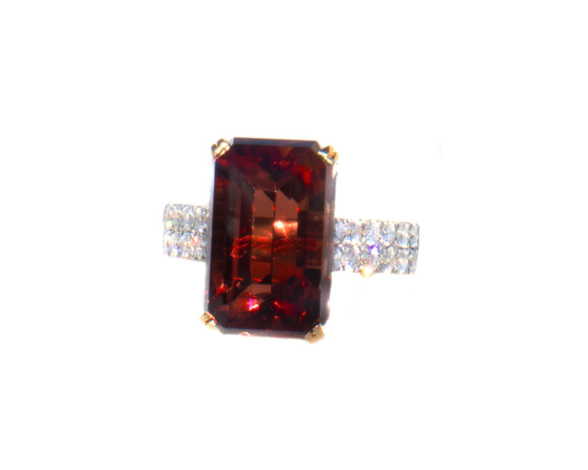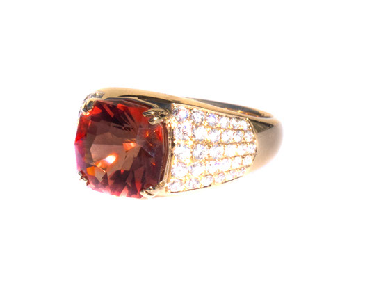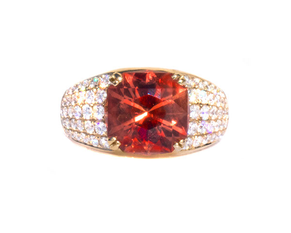 14 Kt yellow gold luxury ring with 3.35 ct PANA mine padparadscha schiller Oregon Sunstone and 1.10 ct accent diamonds (1)