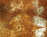 Micro image of Copper Schiller in Oregon Sunstone from PANA Mine. Schiller grade: A (+2). Image by Alex Spencer. (1)