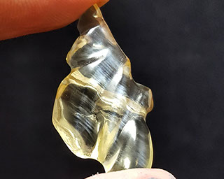 Carving in Oregon Sunstone With a Beautiful Champagne Colored Core with a Rim of Green and a Bit of Copper Schiller