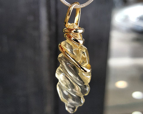 20 ct Champagne Yellow Oregon Sunstone Mined by Derek Lusk at the Spectrum Mine, Set in a 10 ky Gold Setting Fabricated from Scratch